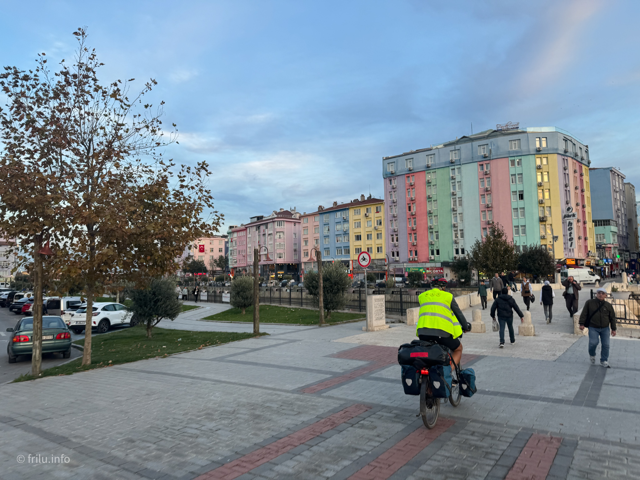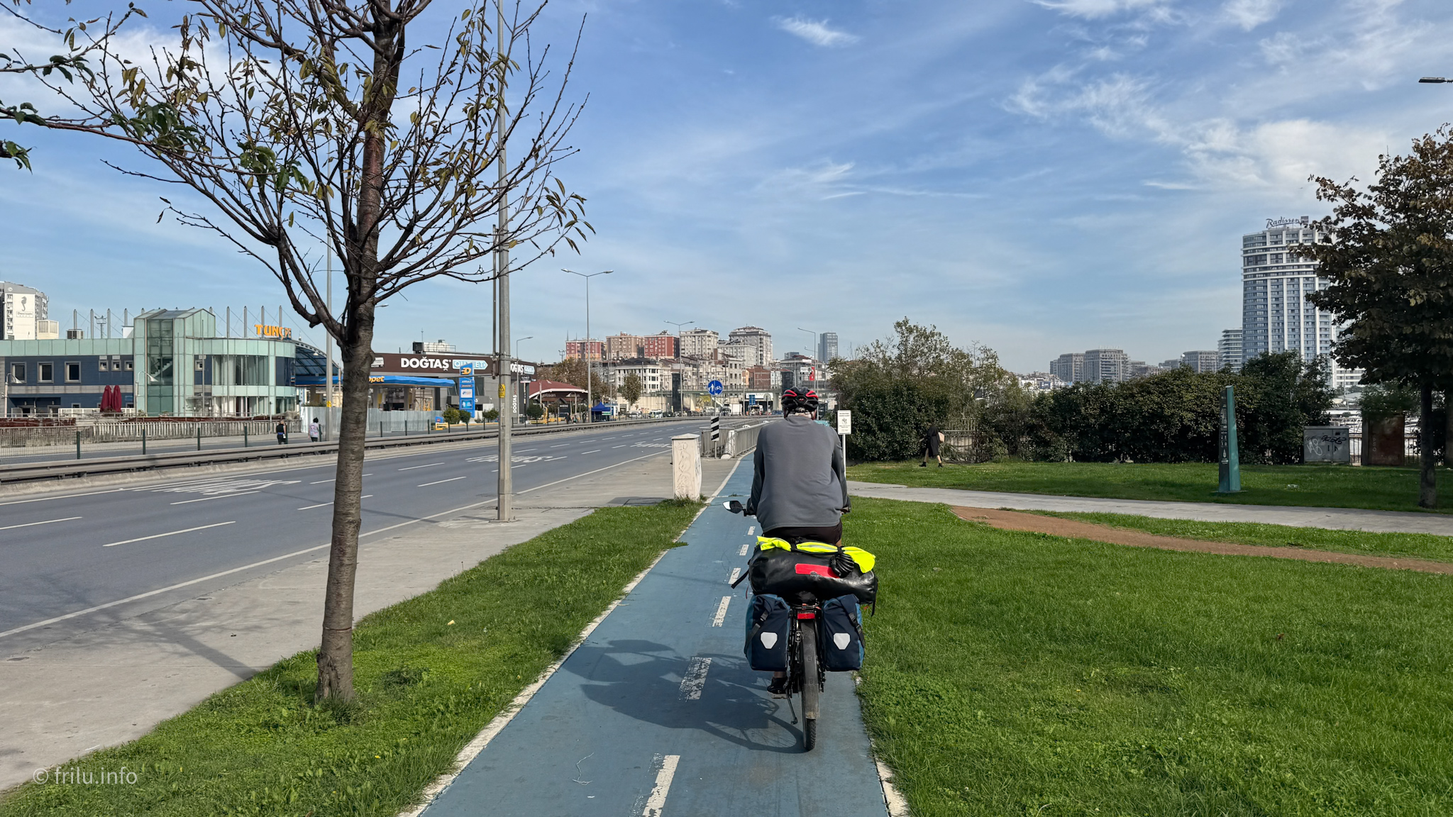You have to be lucky sometimes: on the day we want to go into town, it’s the Istanbul Marathon. This means we have to wait because some roads are closed, but when they reopen for cyclists and pedestrians, there is absolutely no traffic.